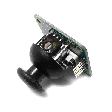 This module combines two potentiometers and a pushbutton switch into a solid mechanical package with an ergonomic thumb dome. Perfect for controlling motors, servos, etc.